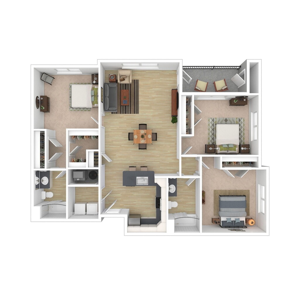Modelo de apartamento: E1$3,1183 Dormitorios, 2 Baños, 1334 sq ftDisponible Ahora![]()