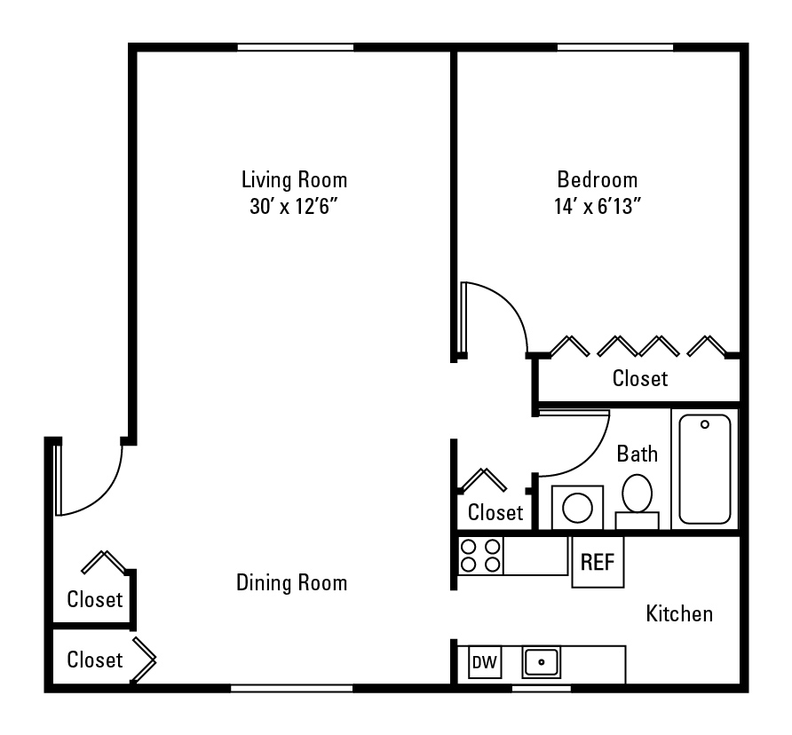 1 Dormitorio, 1 Baño, 787 pies²Disponible AhoraGalería del Modelo