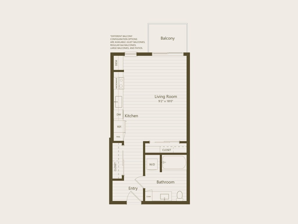 Estudio, 1 Baño, 469 pies²Precio Mensual TotalDisponible May 1Galería del Modelo