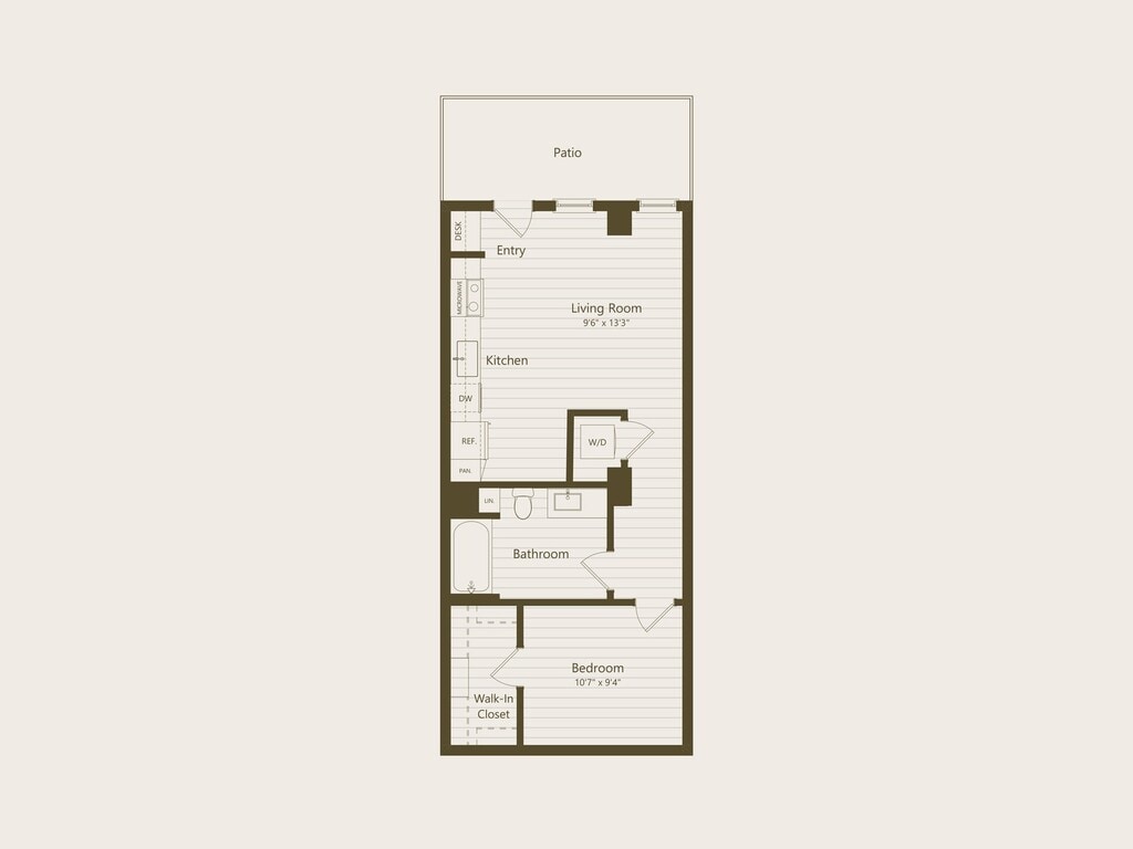 Modelo de apartamento: S1Desde $2,855Estudio, 1 Baño, 497-504 sq ftDisponible April 1, 2026Los planos son representaciones artísticas. Todas las dimensiones son aproximadas. El producto y las especificaciones reales pueden variar en tamaño o detalle. No todas las características están disponibles en cada vivienda en alquiler. Por favor, consulta con un representante para obtener más detalles.