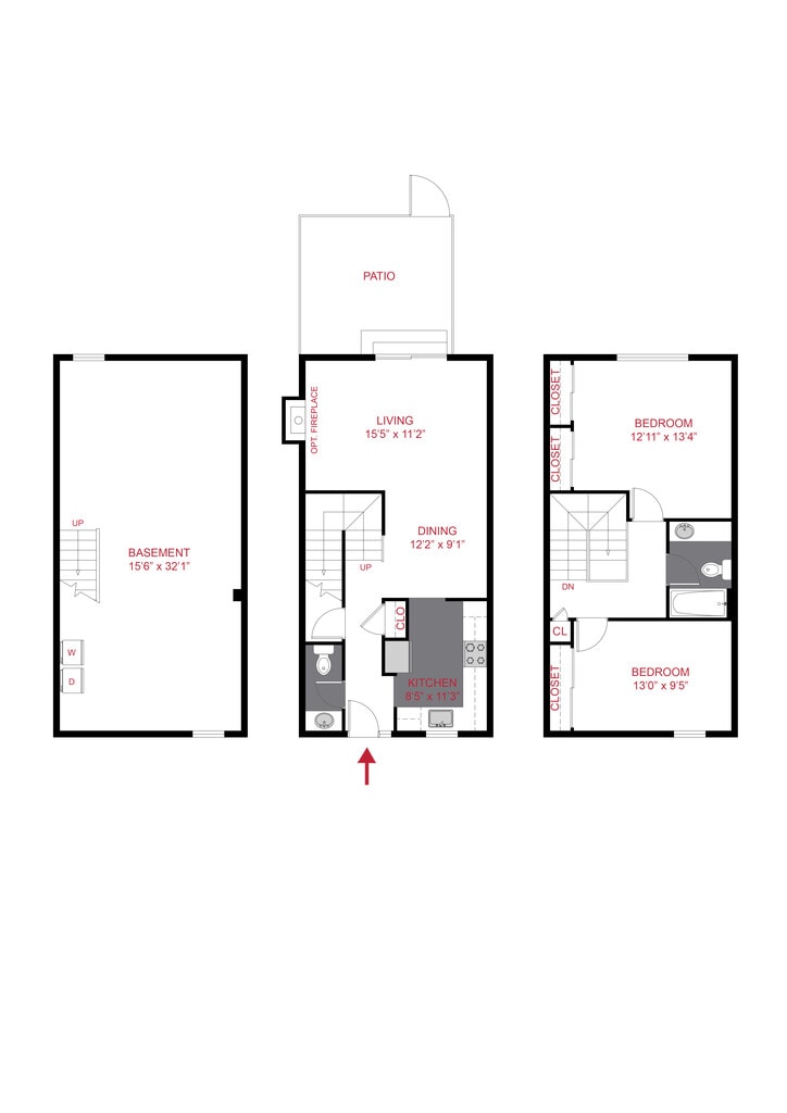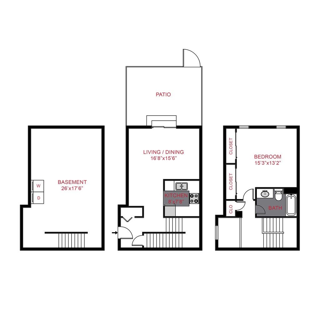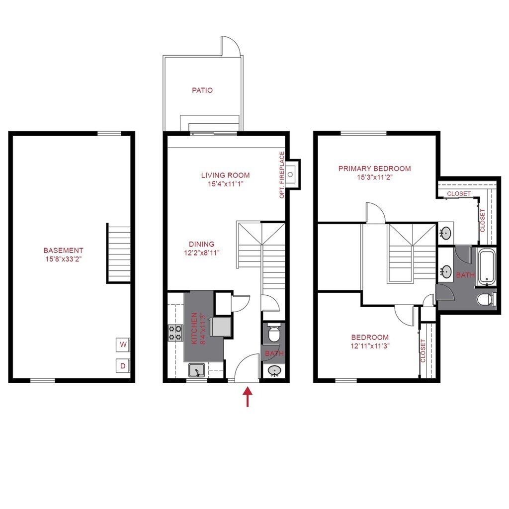 Modelo de apartamento: B12 Dormitorios, 1.5 Baños, 1456 sq ftDisponible Ahora![]()