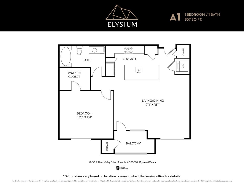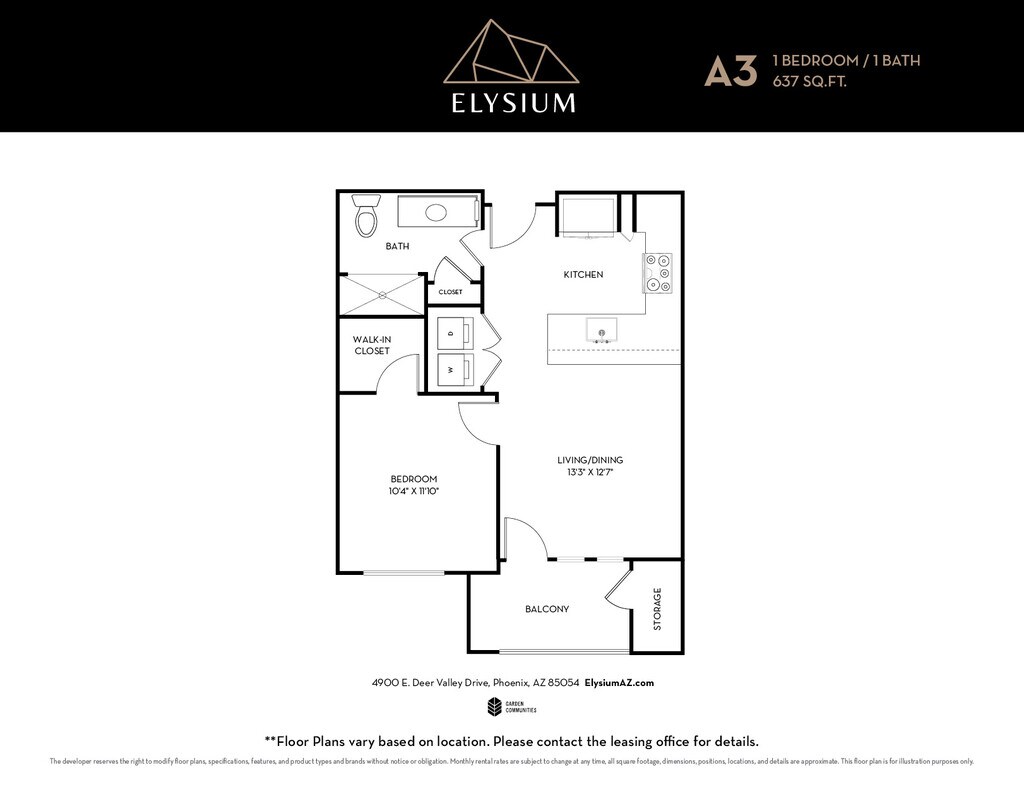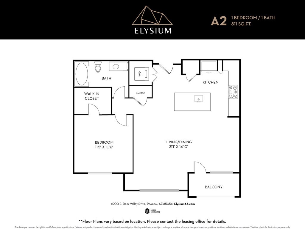 Elysium se encuentra en el Barrio Desert View y el código postal 85054 de Phoenix, AZ. Esta comunidad está gestionada profesionalmente por Garden Communities California