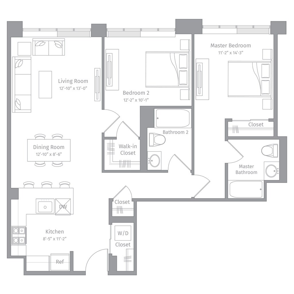 Estudio, 1 Baño, 611 pies²Disponible AhoraGalería del Modelo