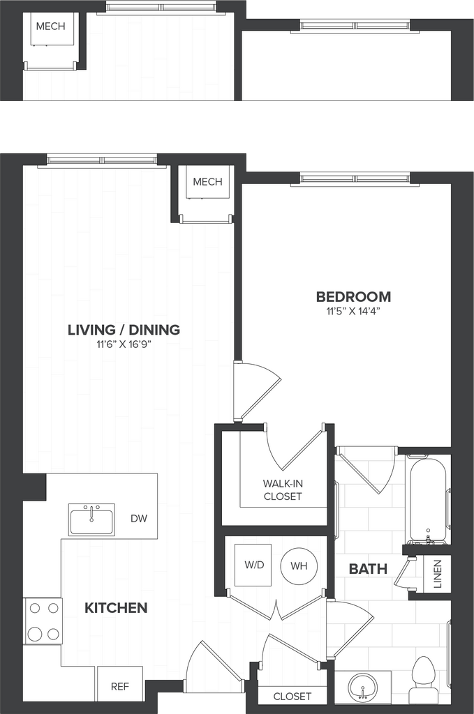 1 Dormitorio, 1 Baño, 761 pies²Disponible AhoraGalería del Modelo