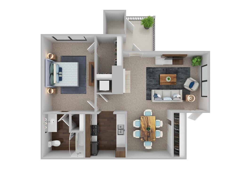 Modelo de apartamento: AcornDesde $8901 Dormitorio, 1 Baño, 713 sq ftDisponible Ahora![]()