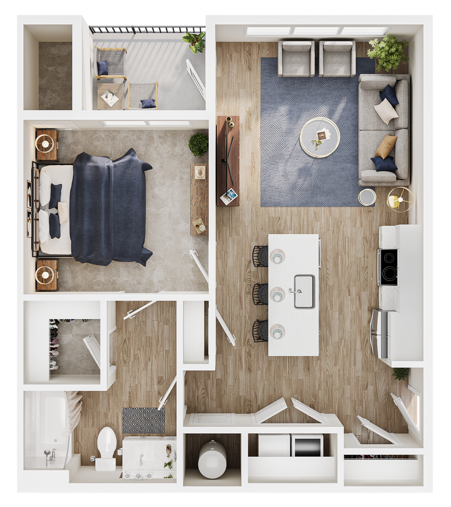 Modelo de apartamento: A1Desde $1,5761 Dormitorio, 1 Baño, 738 sq ftDisponible AhoraLos planos son representaciones artísticas. Todas las dimensiones son aproximadas. El producto y las especificaciones reales pueden variar en tamaño o detalle. No todas las características están disponibles en cada vivienda en alquiler. Por favor, consulta con un representante para obtener más detalles.