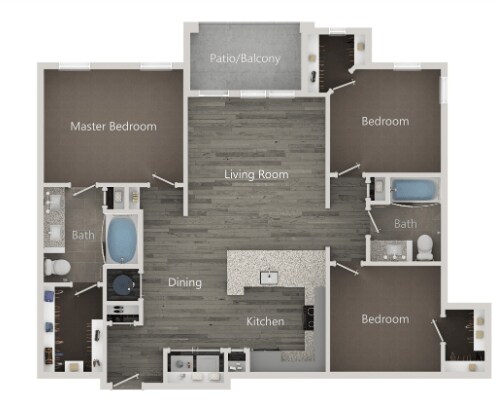 1 Dormitorio, 1 Baño, 677 pies²Precio Mensual TotalDisponible AhoraGalería del Modelo
