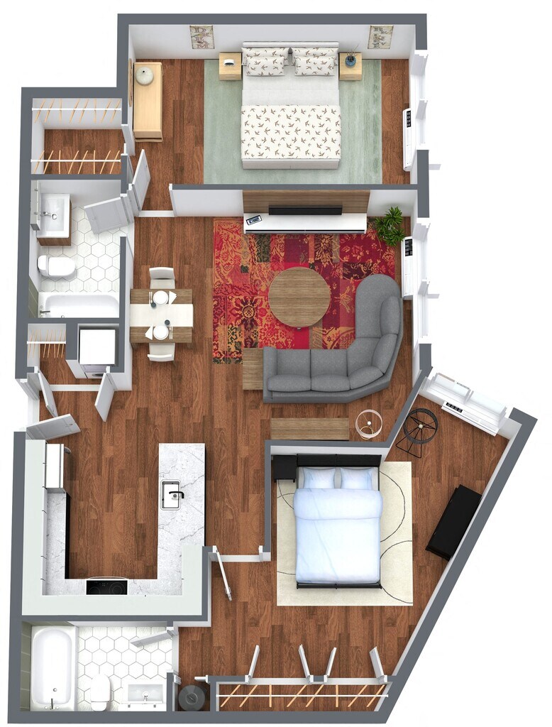 2 Dormitorios, 2 Baños, 1035 pies²Precio Mensual TotalDisponible May 1El más grandeEsta opción tiene las unidades más grandes para este modeloGalería del Modelo