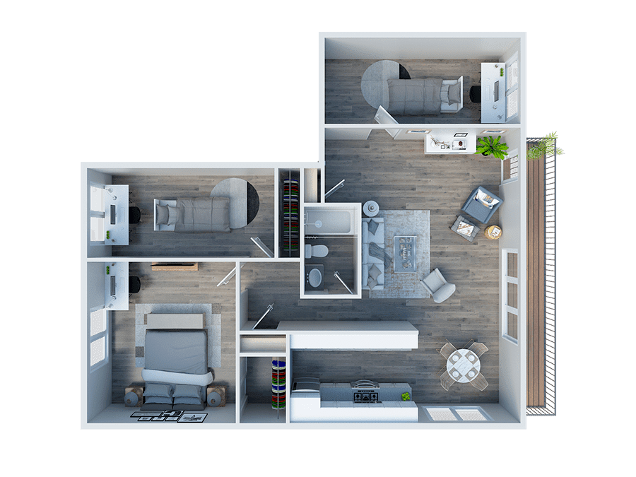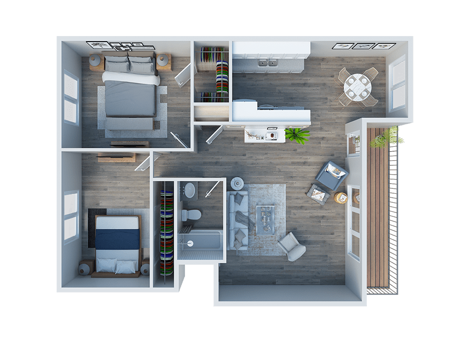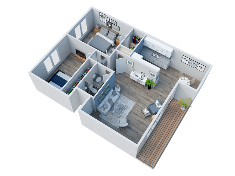 2 Dormitorios, 1 Baño, 950 pies²Disponible AhoraGalería del Modelo