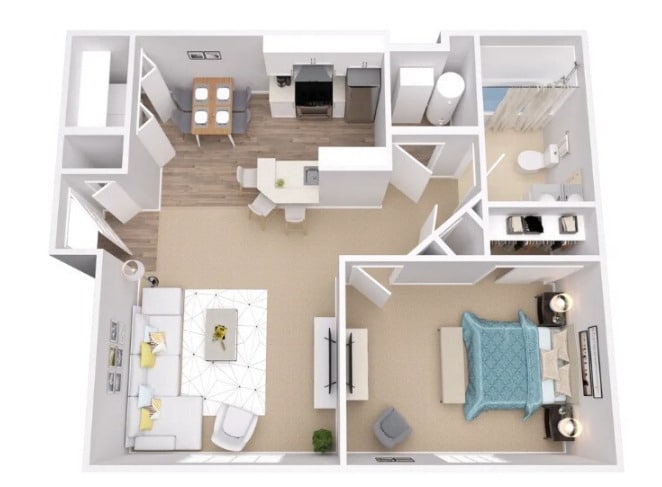 1 Dormitorio, 1 Baño, 750 pies²Disponible AhoraGalería del Modelo