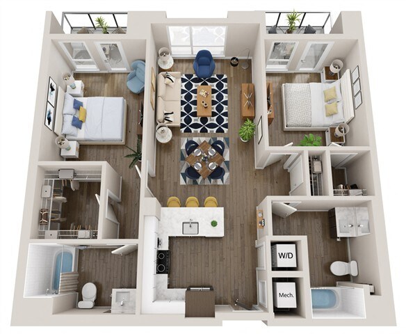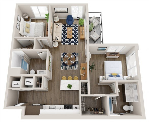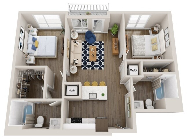 Modelo de apartamento: L2Llame para Precios1 Dormitorio, 1.5 Baños, 759 sq ftNo Disponible![]()