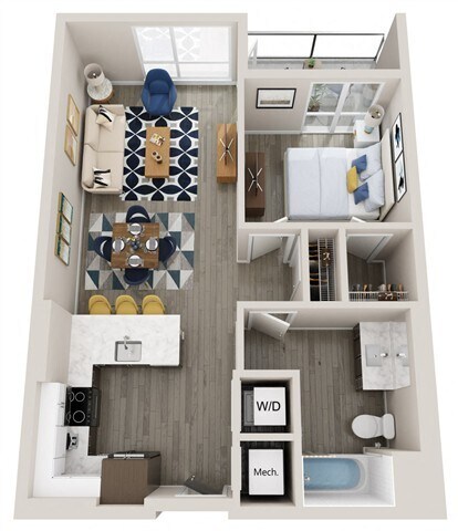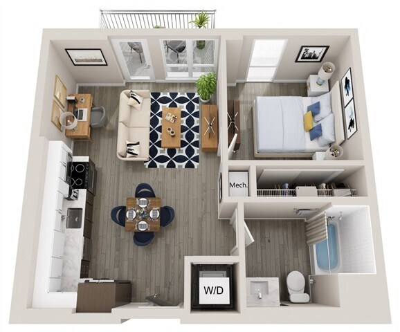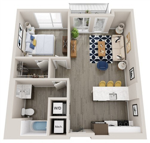 Modelo de apartamento: A5Llame para Precios1 Dormitorio, 1 Baño, 667 sq ftNo Disponible![]()