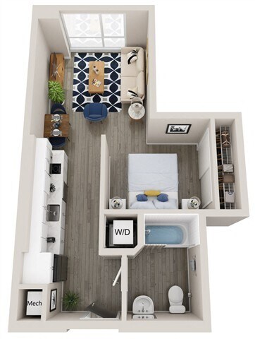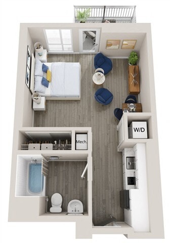 Estudio, 1 Baño, 541-544 pies²Galería del Modelo