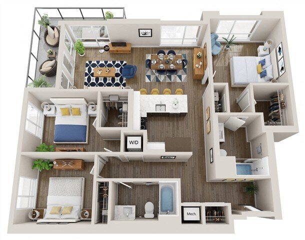 Modelo de apartamento: L3Llame para Precios1 Dormitorio, 1.5 Baños, 873 sq ftNo Disponible![]()