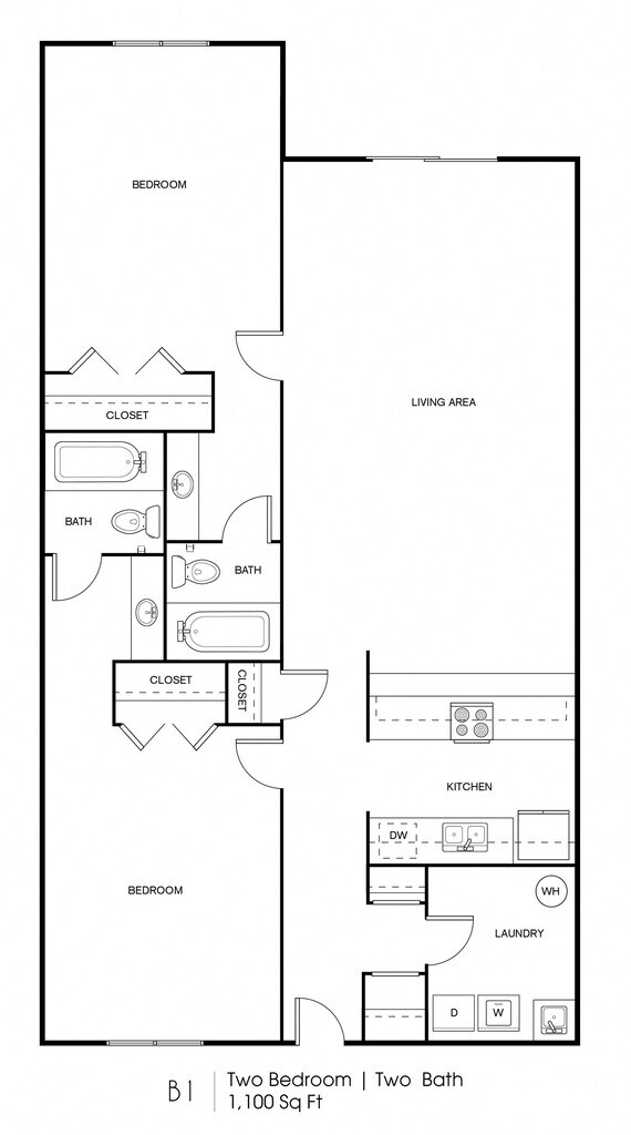 Modelo de apartamento: B1$1,5502 Dormitorios, 2 Baños, 1100 sq ftDisponible Ahora![]()