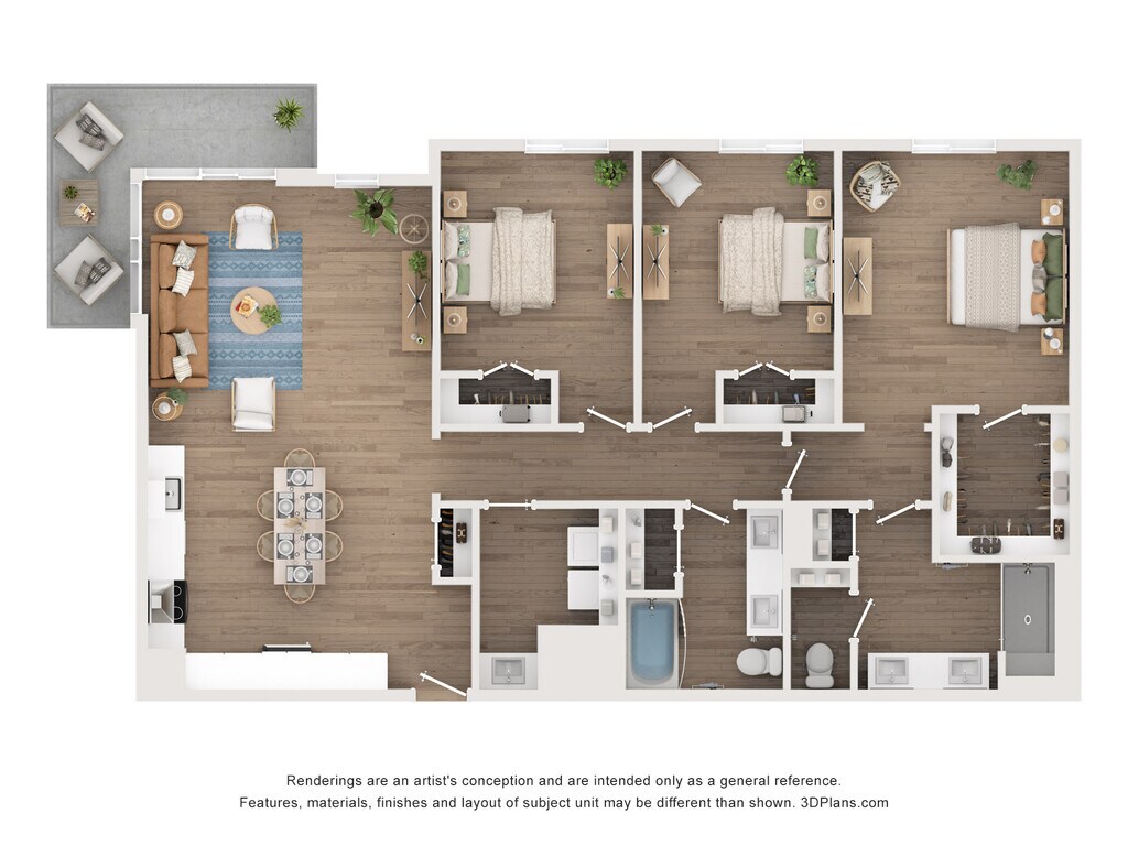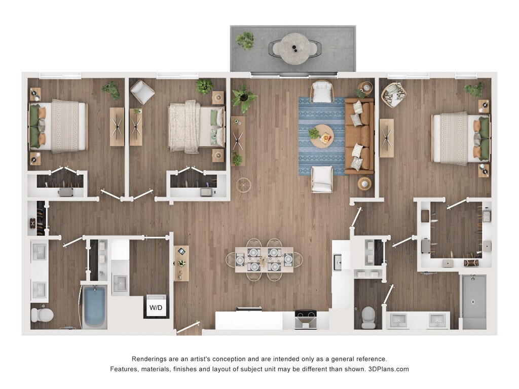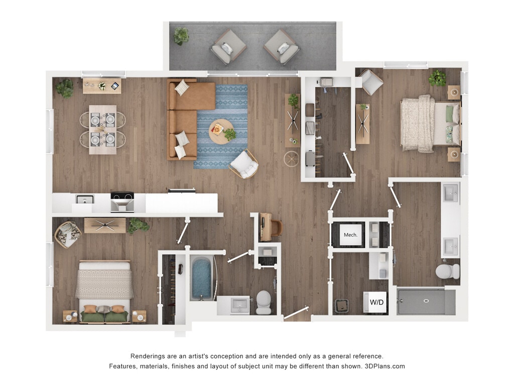 Modelo de apartamento: C2Llame para Precios3 Dormitorios, 2.5 Baños, 1673 sq ftNo Disponible![]()