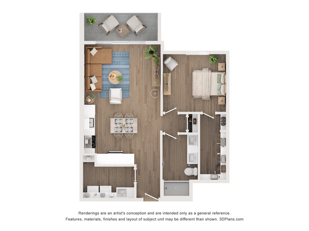1 Dormitorio, 1 Baño, 761 pies²Galería del Modelo