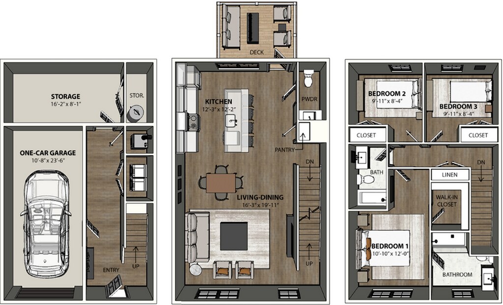Townhome 2 - Plano 1 Unidad de apartamento: BLDG4-3018Modelo de apartamento: Townhome 2$2,1753 Dormitorios, 2.5 Baños, 1653 sq ftDisponible AhoraTownhome 1