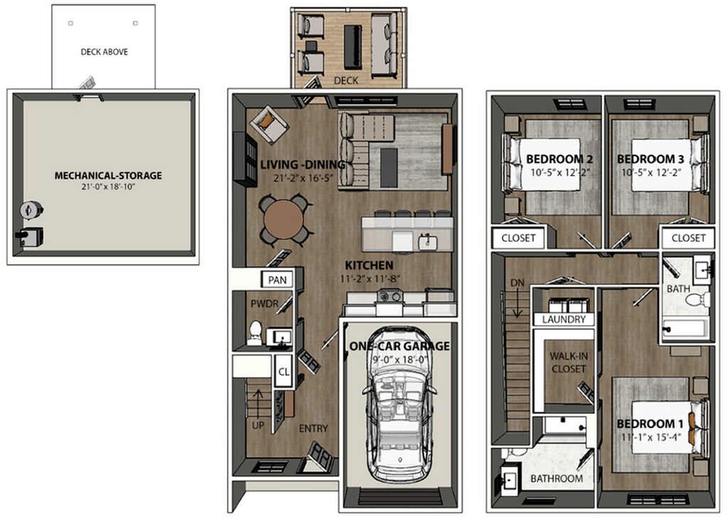 3 Dormitorios, 2.5 Baños, 1385 pies²Galería del Modelo