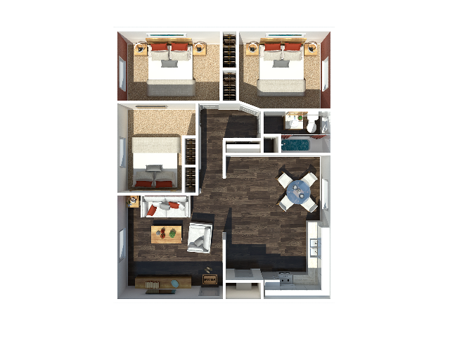 Modelo de apartamento: 2 Bedroom ADesde $1,2692 Dormitorios, 1 Baño, 888 sq ftDisponible Ahora![]()