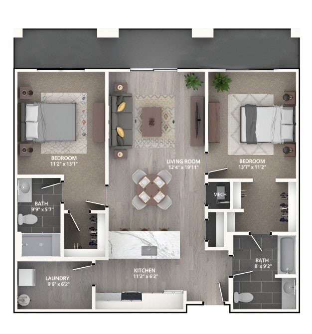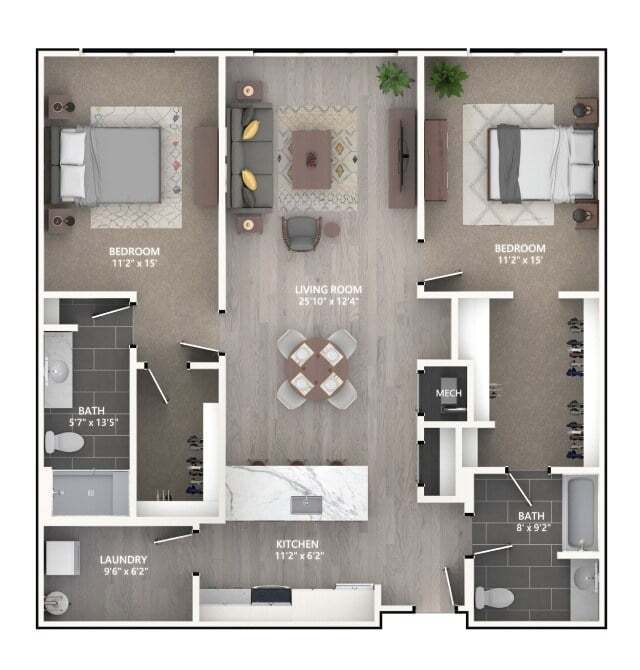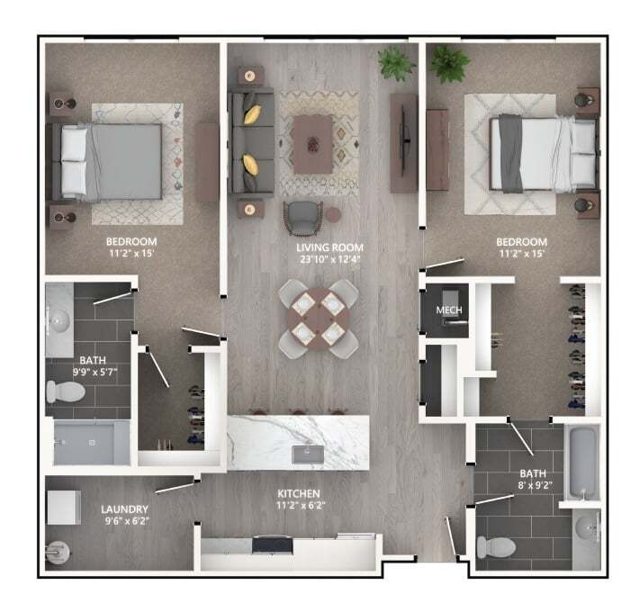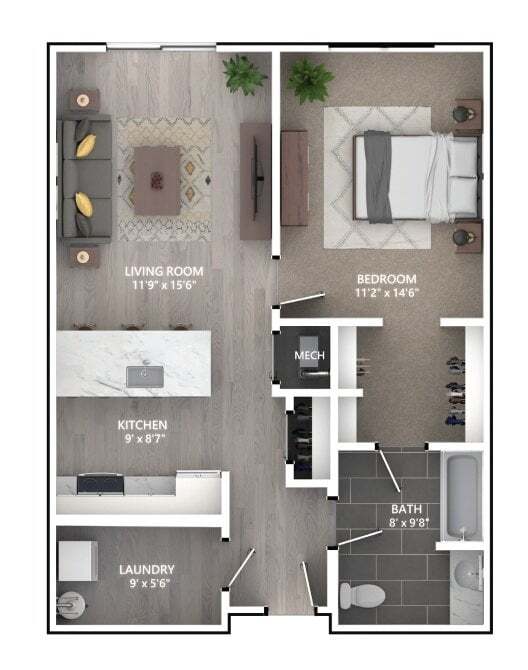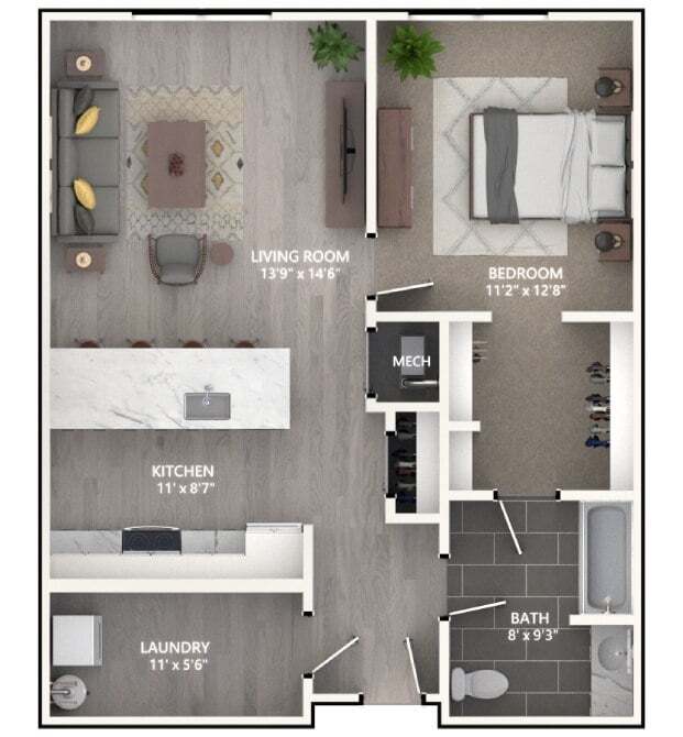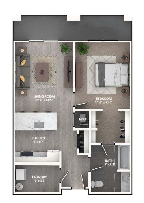 Modelo de apartamento: A6_Emerson I$4,6801 Dormitorio, 1 Baño, 906 sq ftDisponible AhoraLos planos son representaciones artísticas. Todas las dimensiones son aproximadas. El producto y las especificaciones reales pueden variar en tamaño o detalle. No todas las características están disponibles en cada vivienda en alquiler. Por favor, consulta con un representante para obtener más detalles.