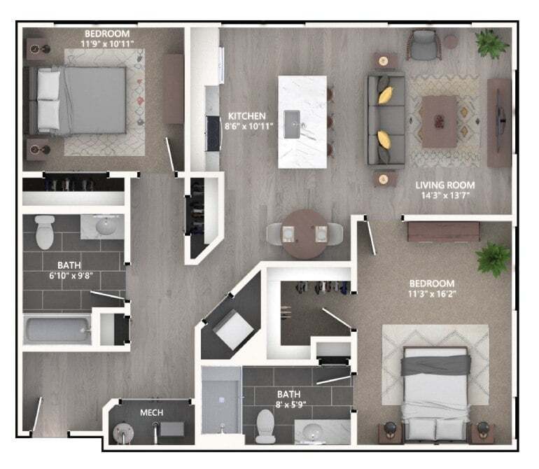 1 Dormitorio, 1 Baño, 806 pies²Precio Mensual TotalDisponible AhoraGalería del Modelo