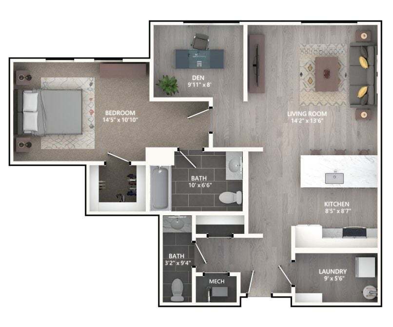 1 Dormitorio, 1 Baño, 906 pies²Precio Mensual TotalDisponible AhoraGalería del Modelo