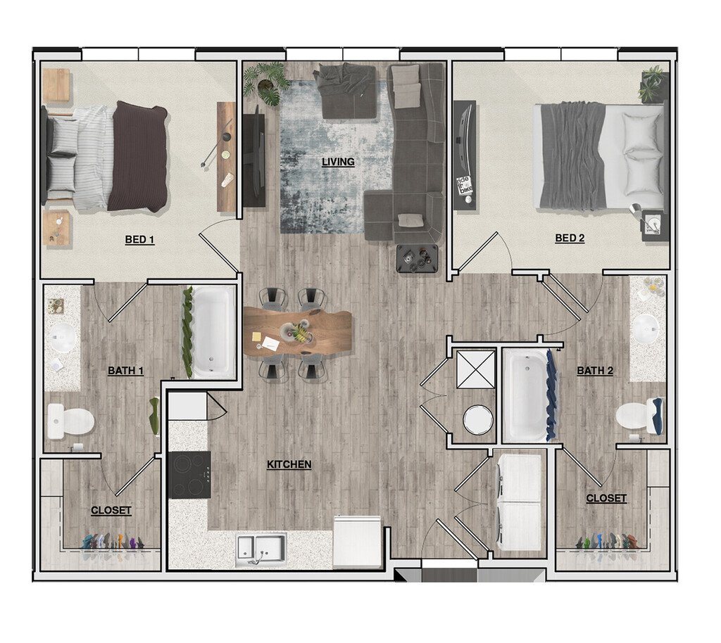 2 Dormitorios, 2 Baños, 947 pies²Galería del Modelo