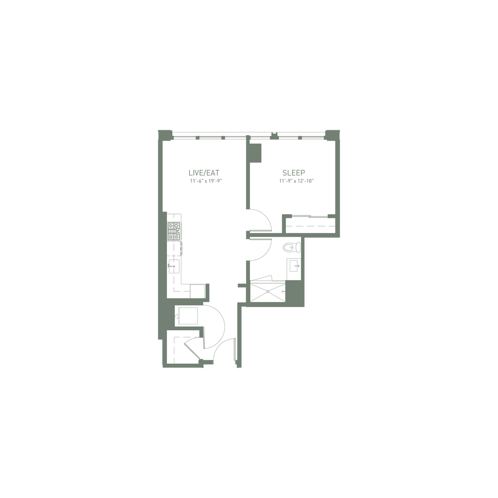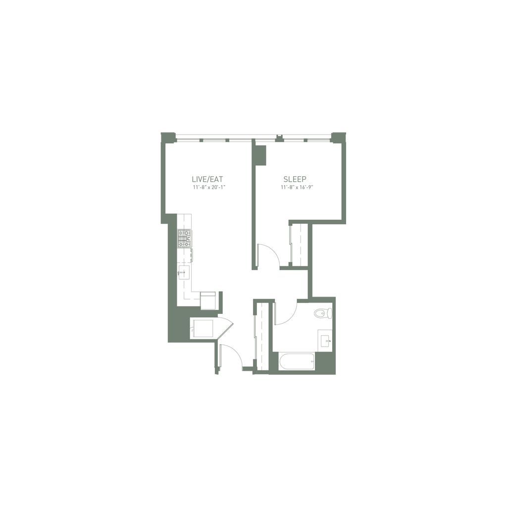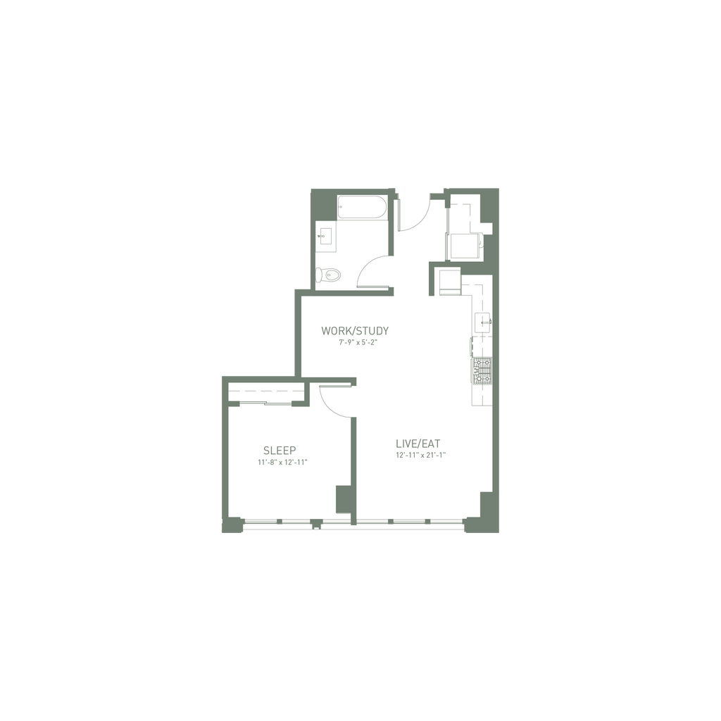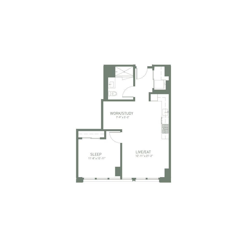 Modelo de apartamento: S1.1Desde $2,199Estudio, 1 Baño, 489 sq ftDisponible Ahora![]()