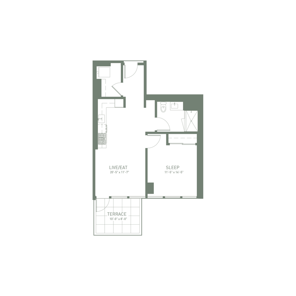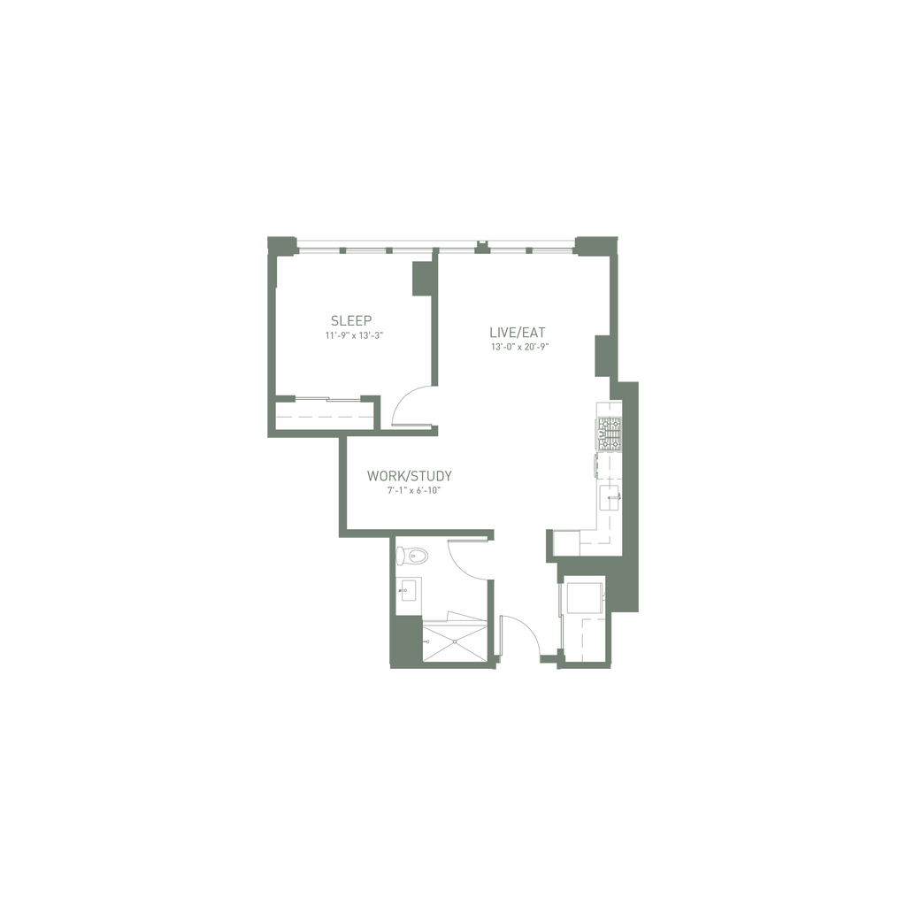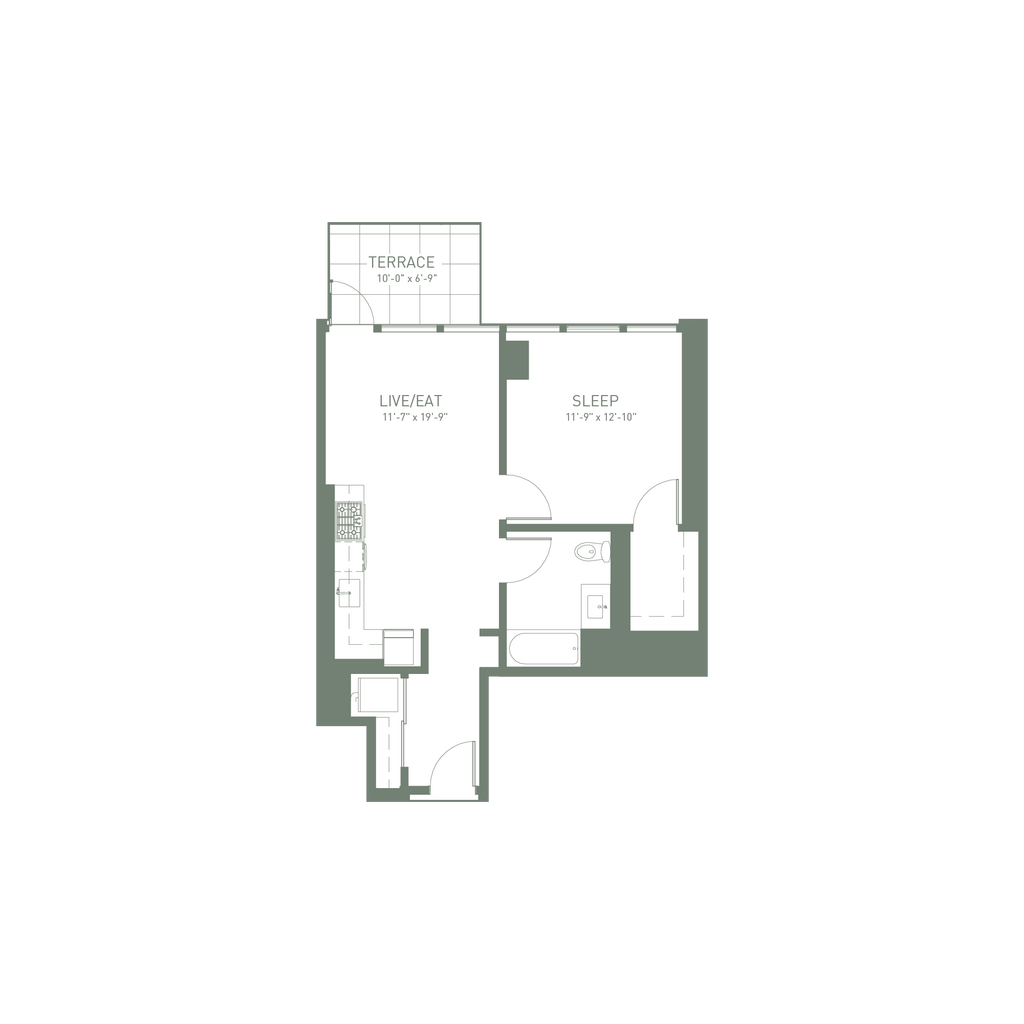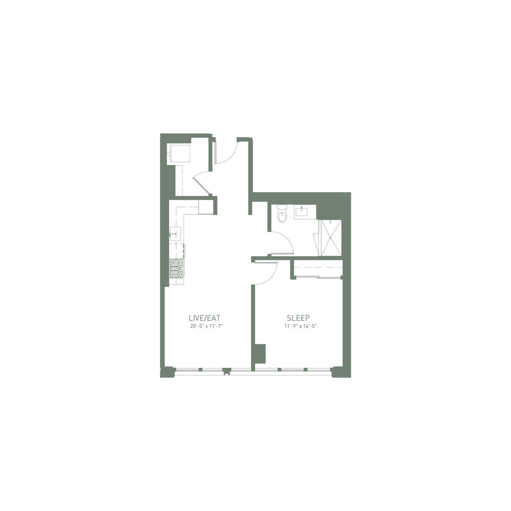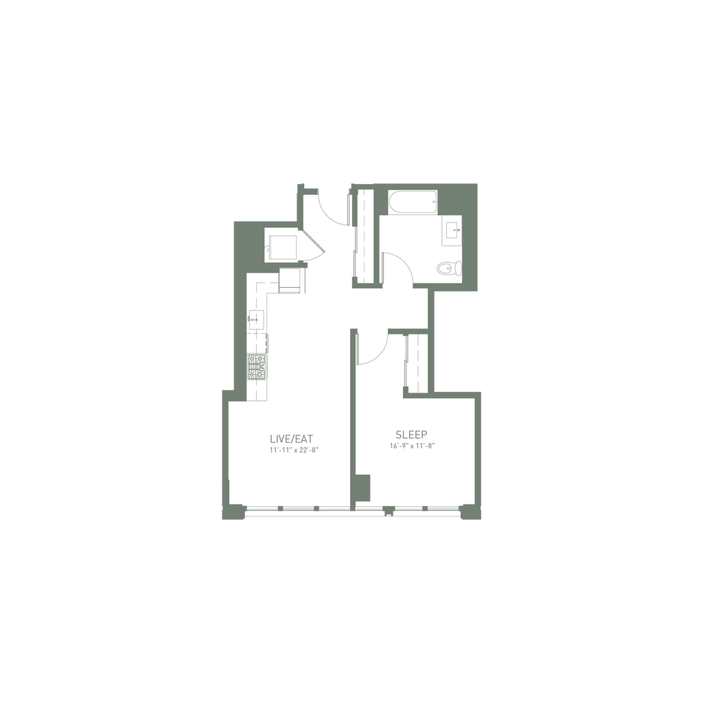 Modelo de apartamento: S1.1Desde $2,199Estudio, 1 Baño, 489 sq ftDisponible Ahora![]()