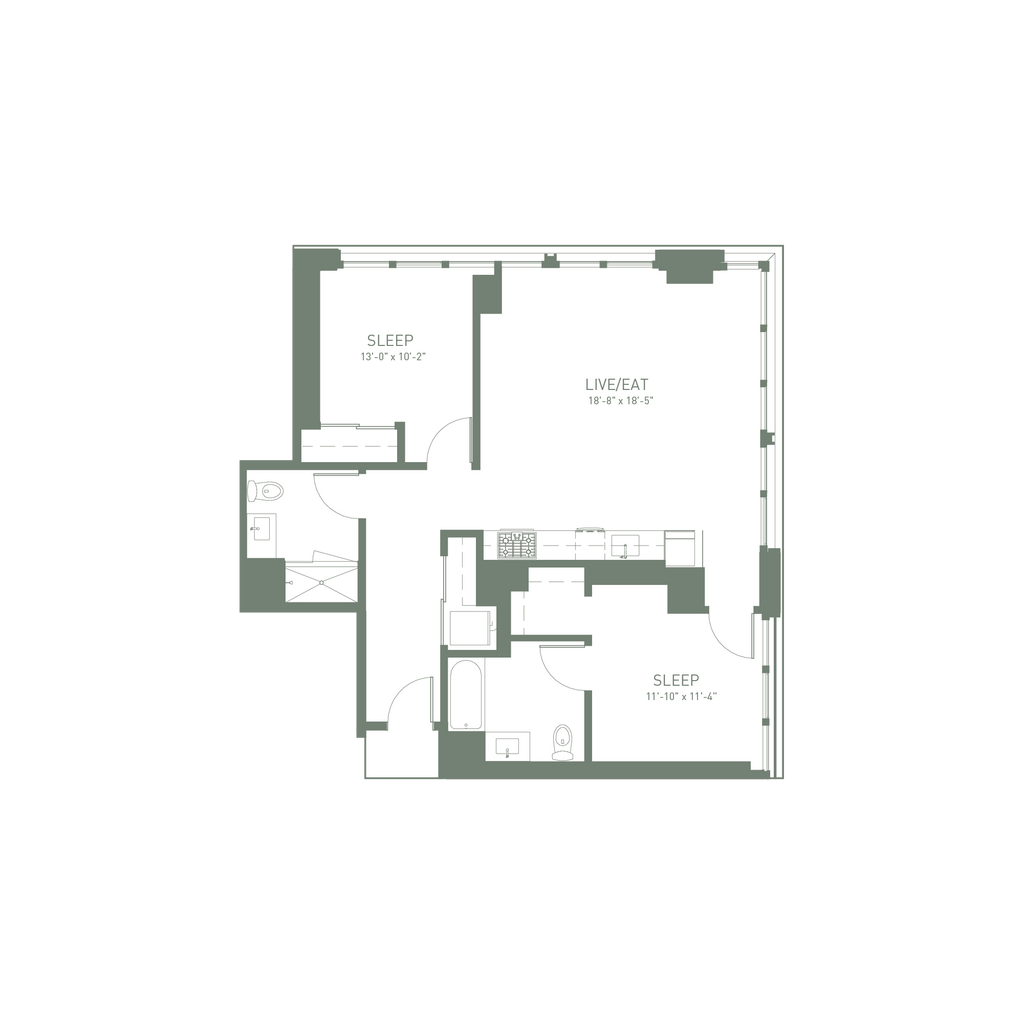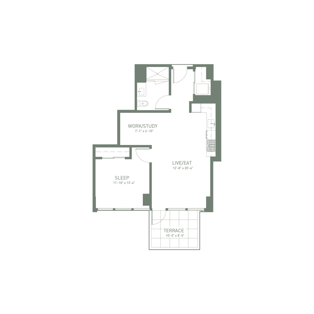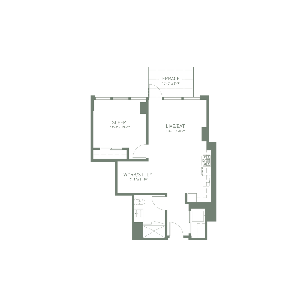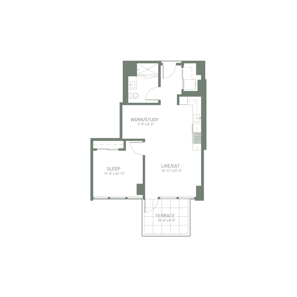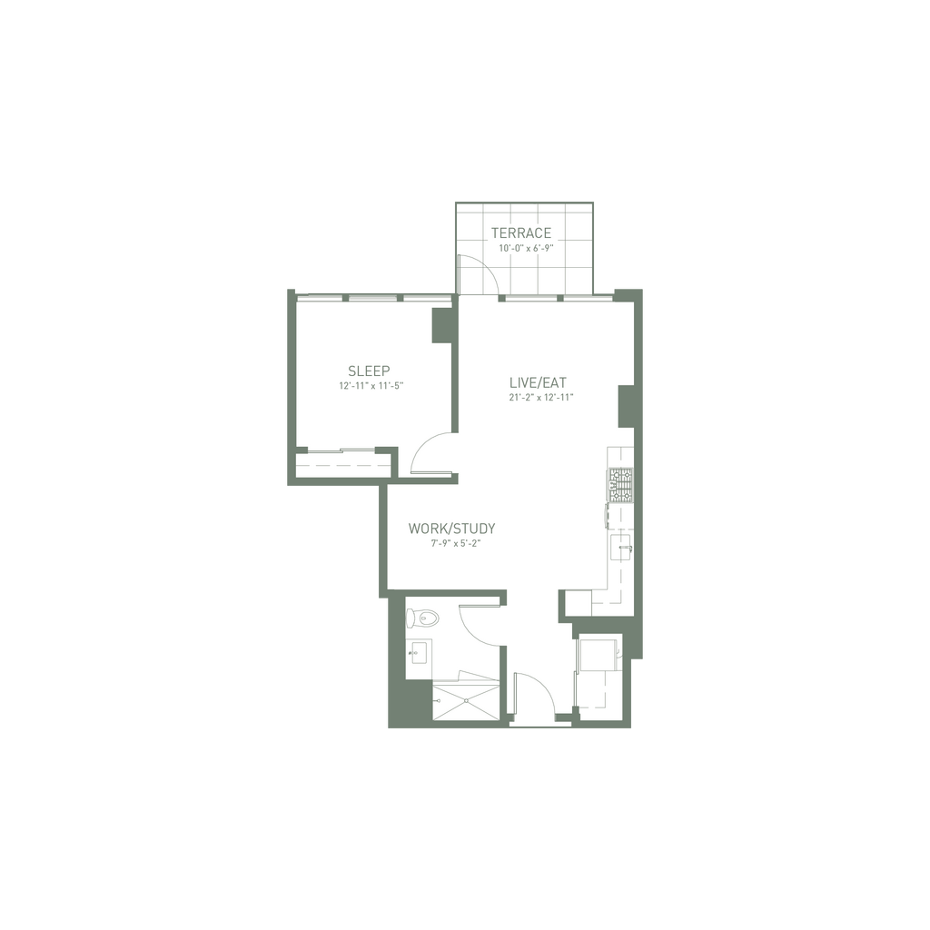 Modelo de apartamento: S2.1Desde $2,347Estudio, 1 Baño, 487 sq ftNo Disponible![]()