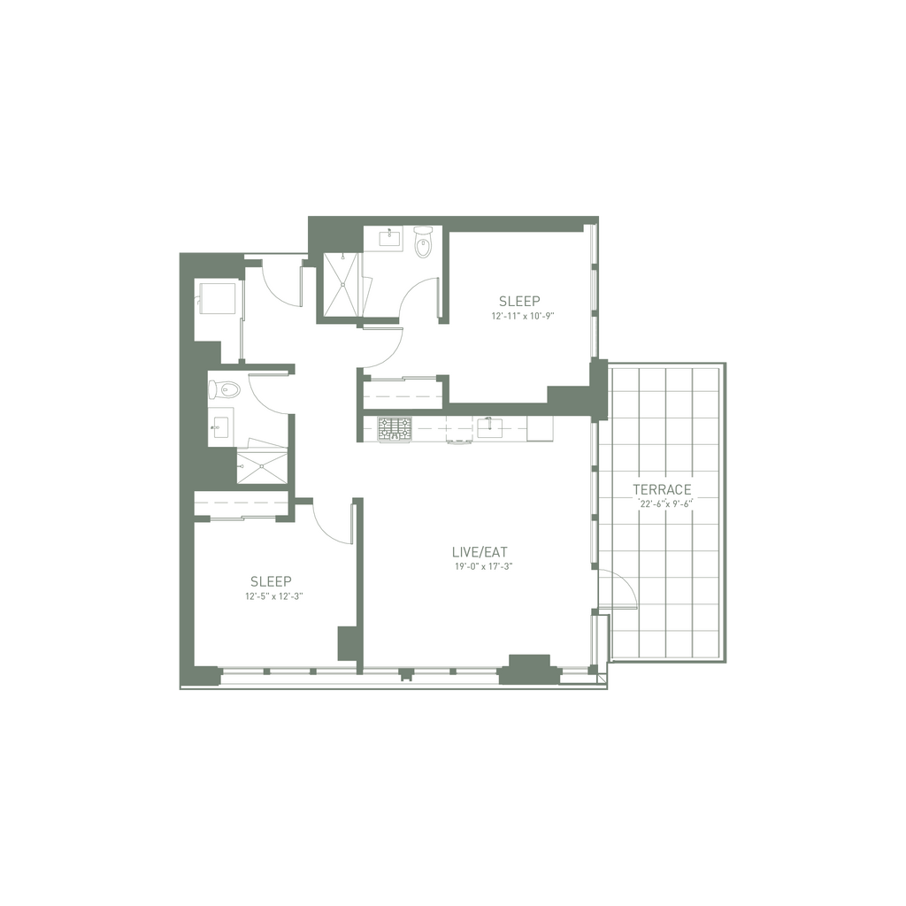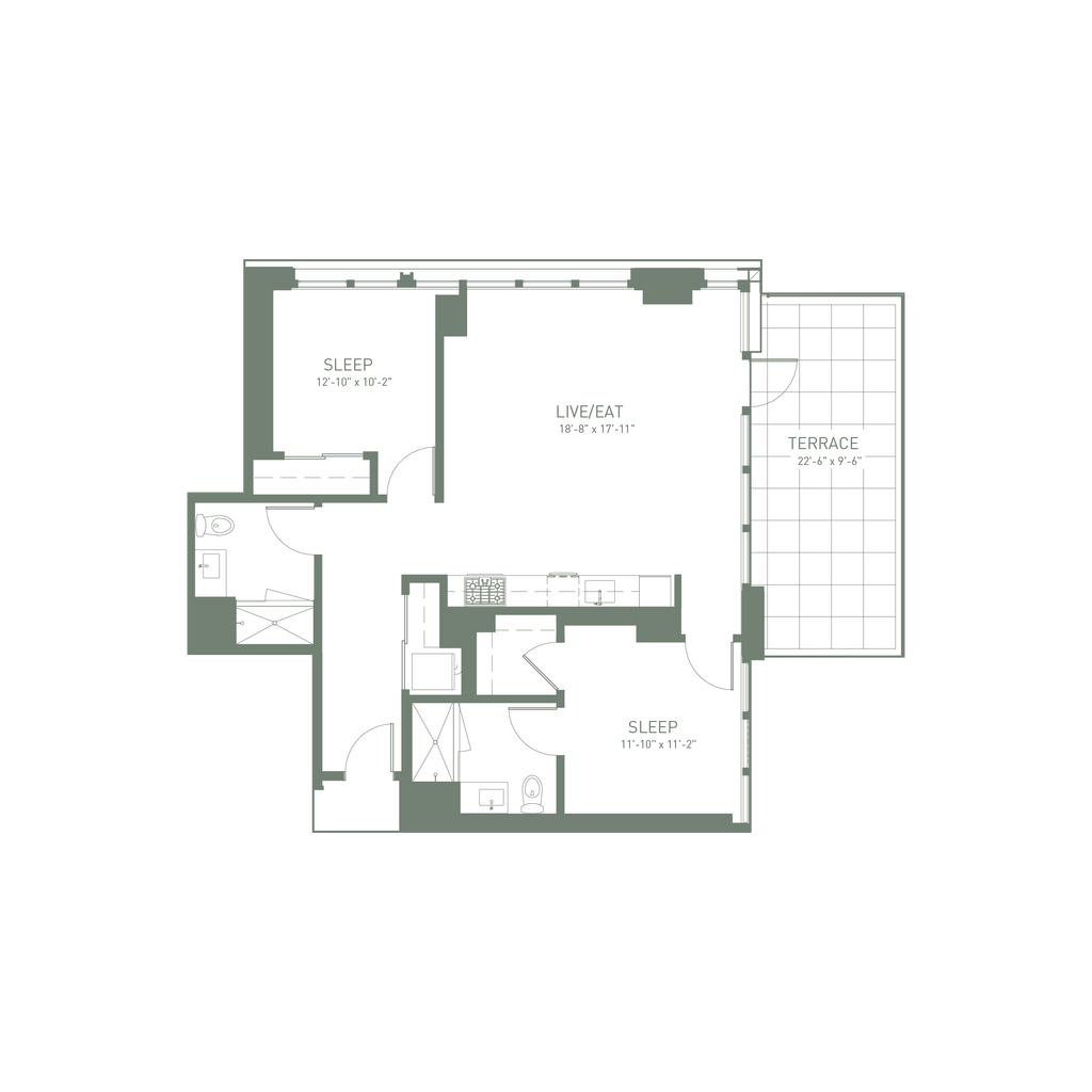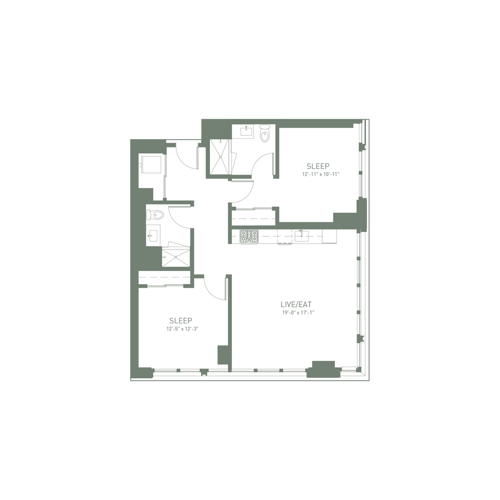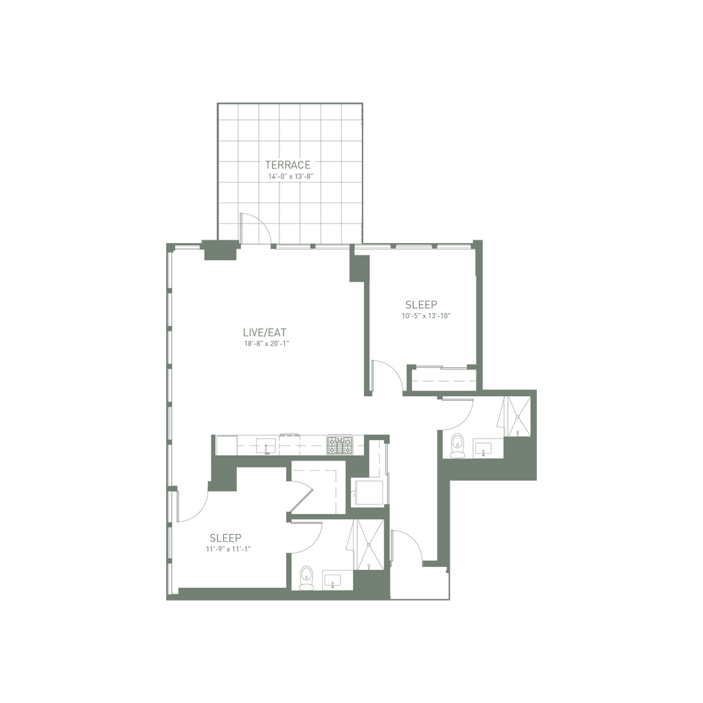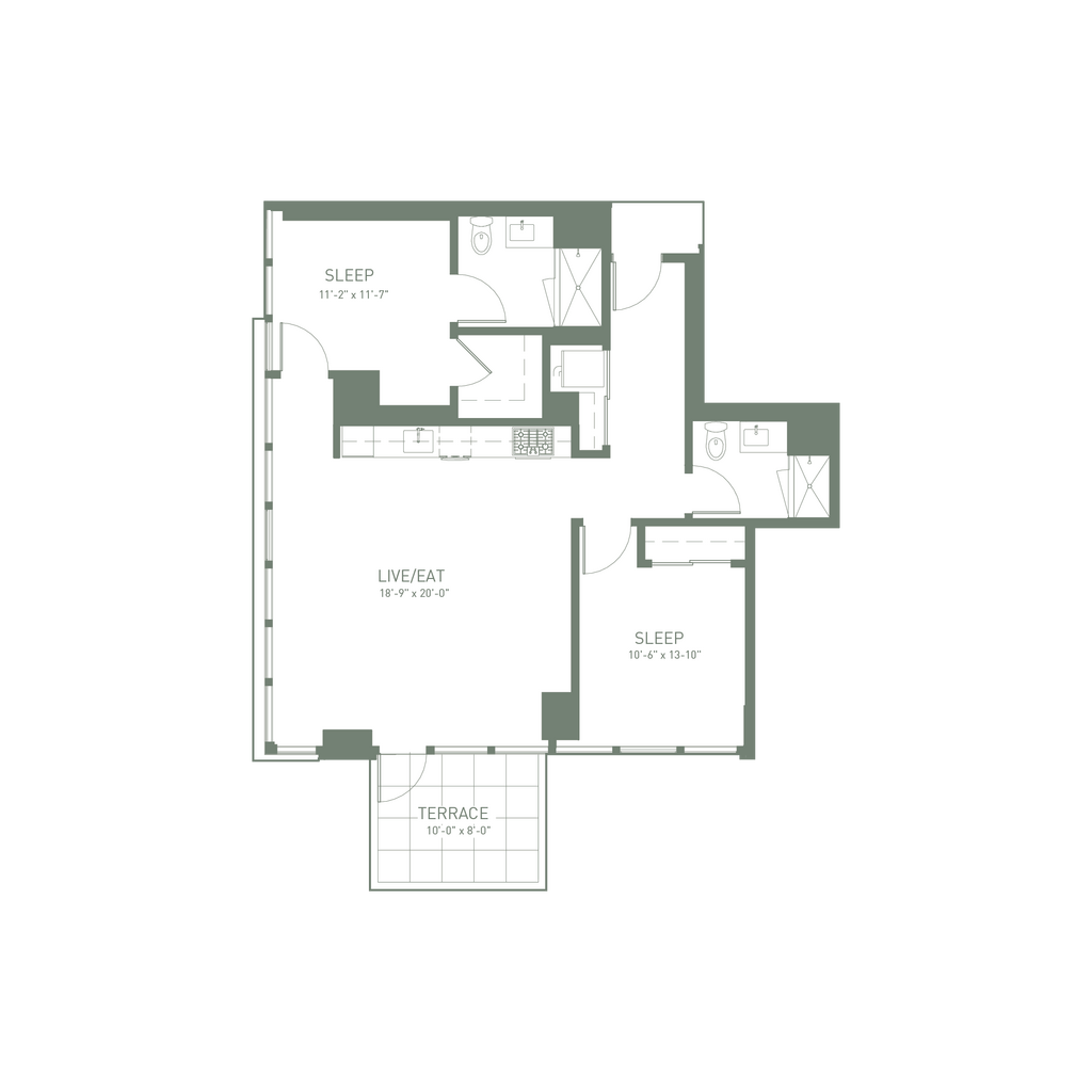 Modelo de apartamento: S2.1Desde $2,347Estudio, 1 Baño, 487 sq ftNo Disponible![]()