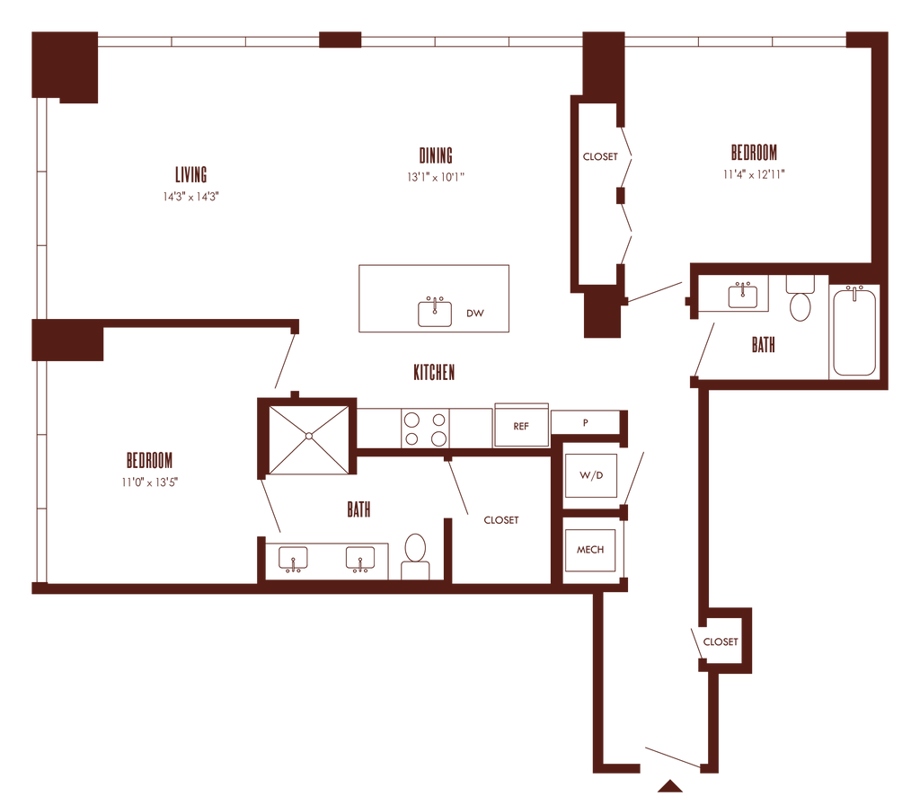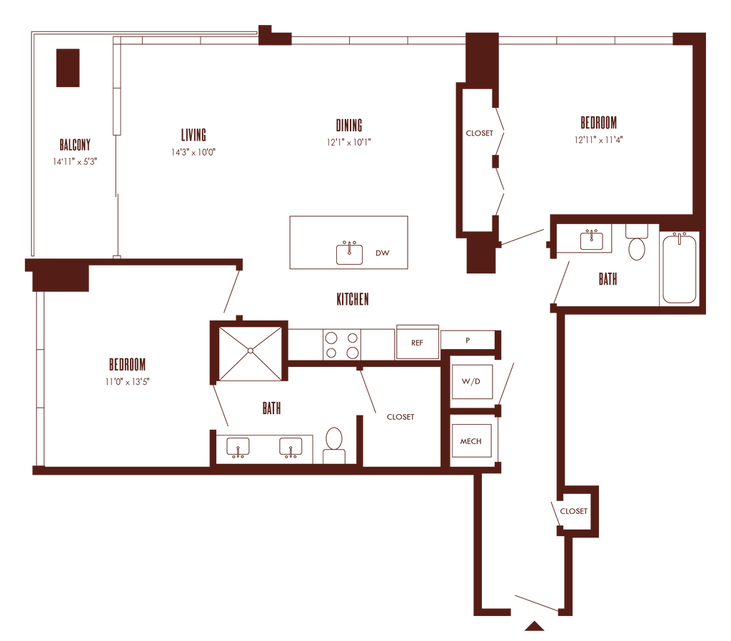1 Dormitorio, 1 Baño, 550 pies²Disponible AhoraGalería del Modelo