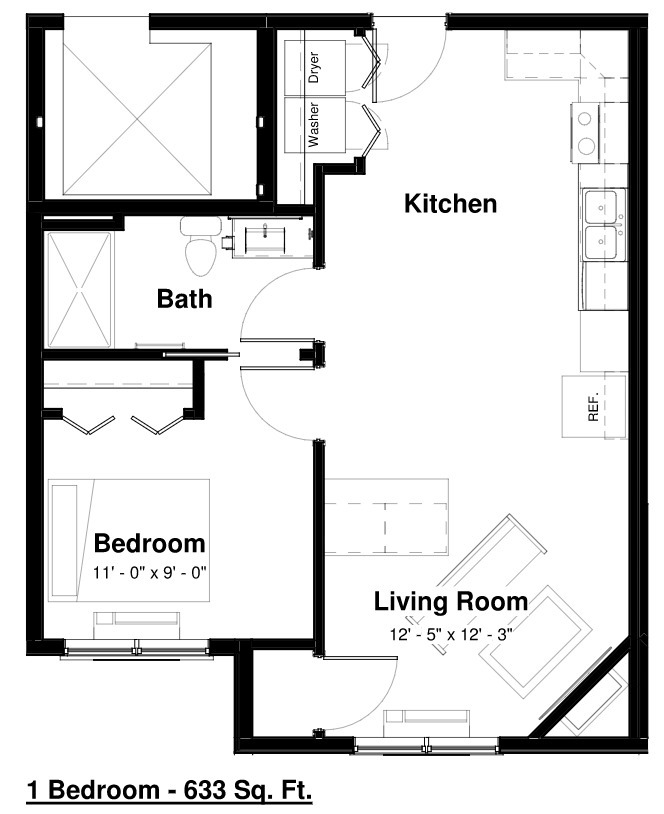 1 Dormitorio, 1 Baño, 633 pies²Galería del Modelo