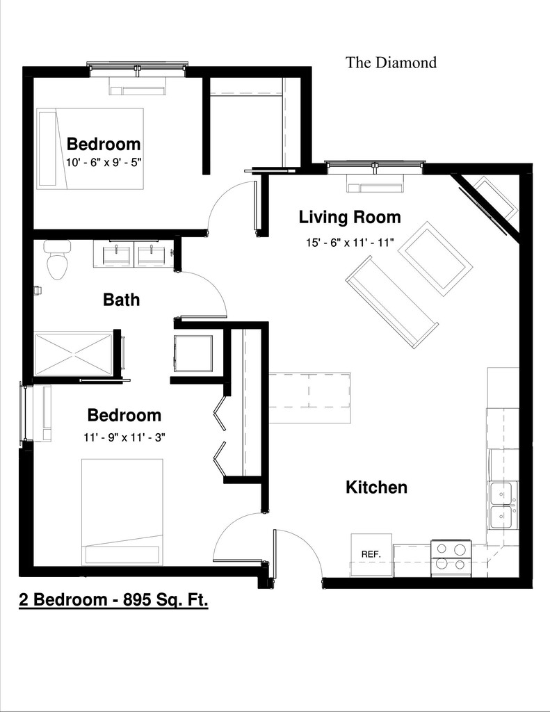 Modelo de apartamento: Diamond2 Dormitorios, 1 Baño, 895 sq ftNo Disponible![]()