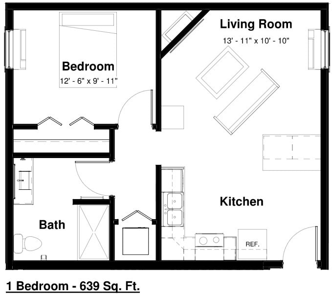 1 Dormitorio, 1 Baño, 639 pies²Galería del Modelo
