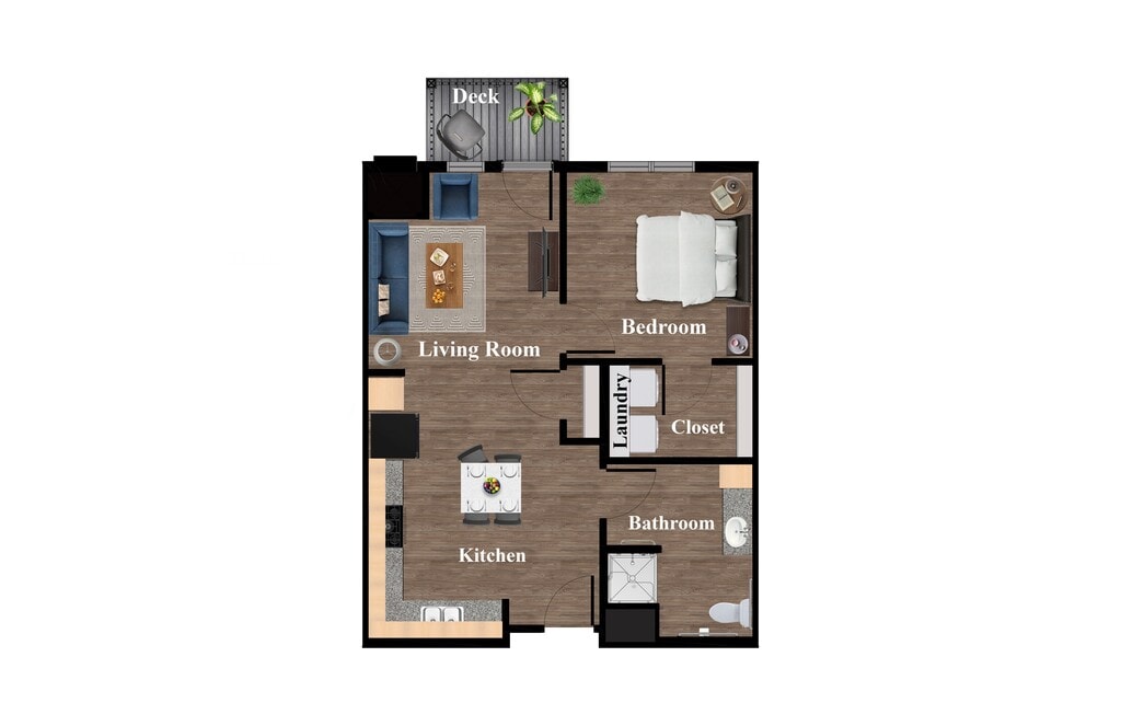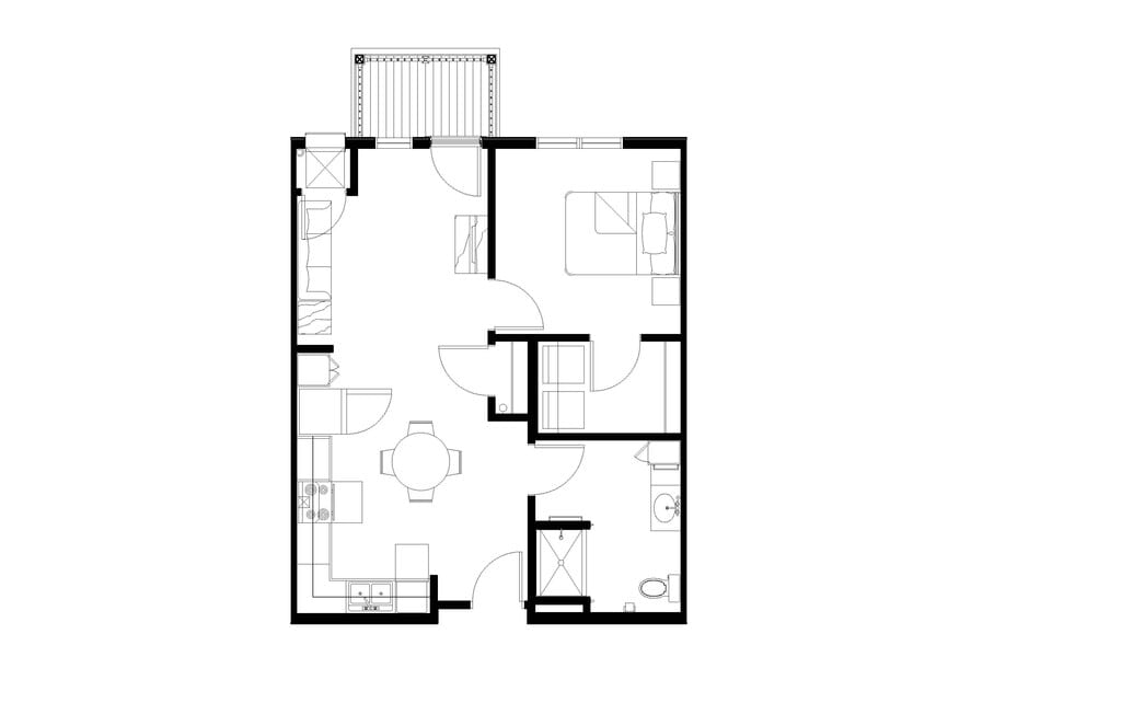 2 Dormitorios, 1 Baño, 838 pies²Disponible AhoraGalería del Modelo