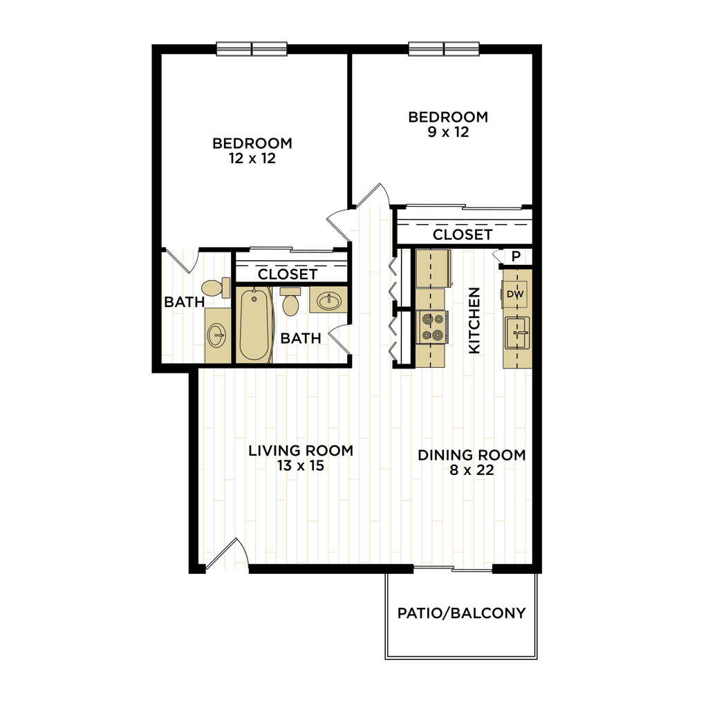 Modelo de apartamento: Desert Willow$3,0602 Dormitorios, 2 Baños, 880 sq ftDisponible Ahora![]()