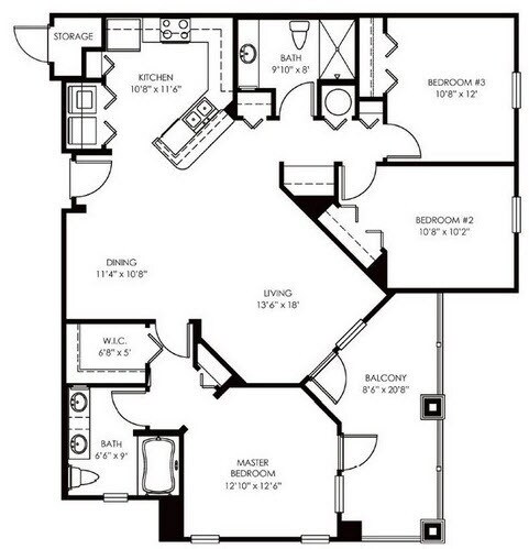 Modelo de apartamento: CollinsDesde $1,5682 Dormitorios, 2 Baños, 1122 sq ftDisponible Ahora![]()