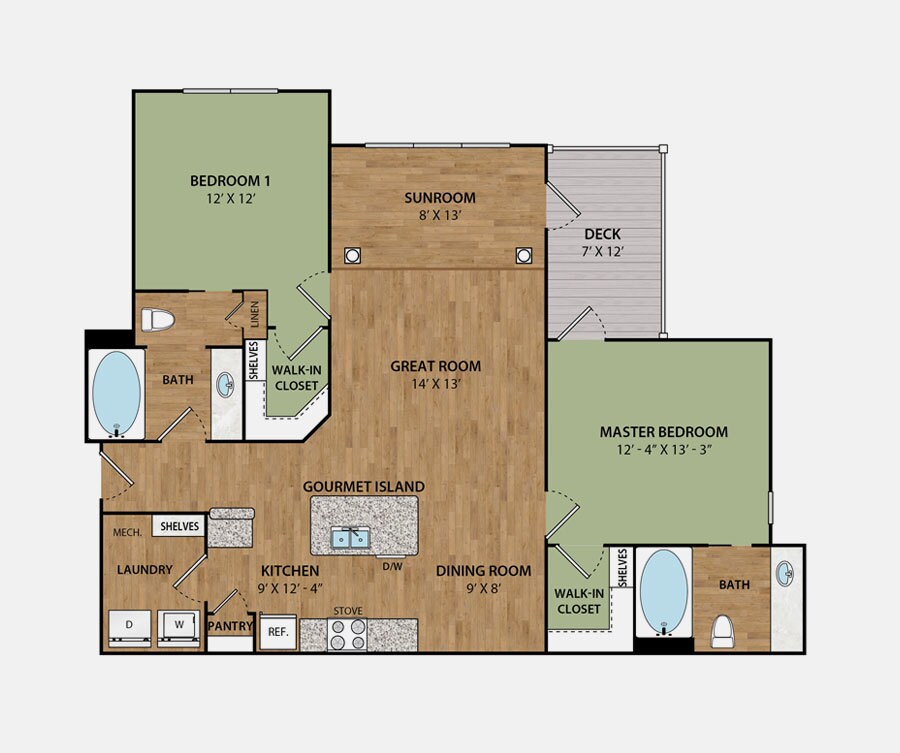 Modelo de apartamento: Onewood3 Dormitorios, 2 Baños, 1379 sq ftNo DisponiblePlanosFotos![]()