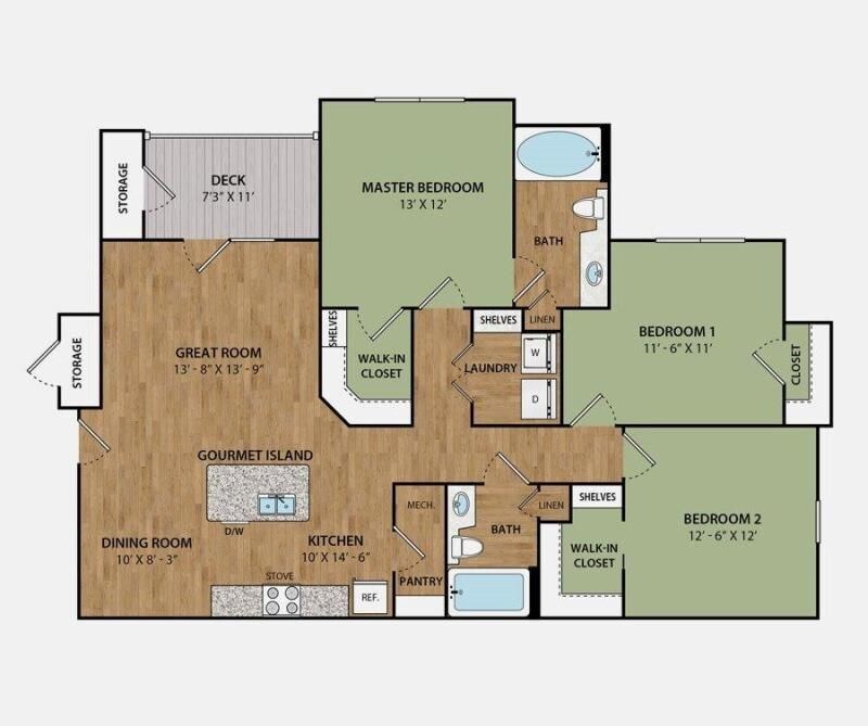 3 Dormitorios, 2 Baños, 1379 pies²Galería del Modelo
