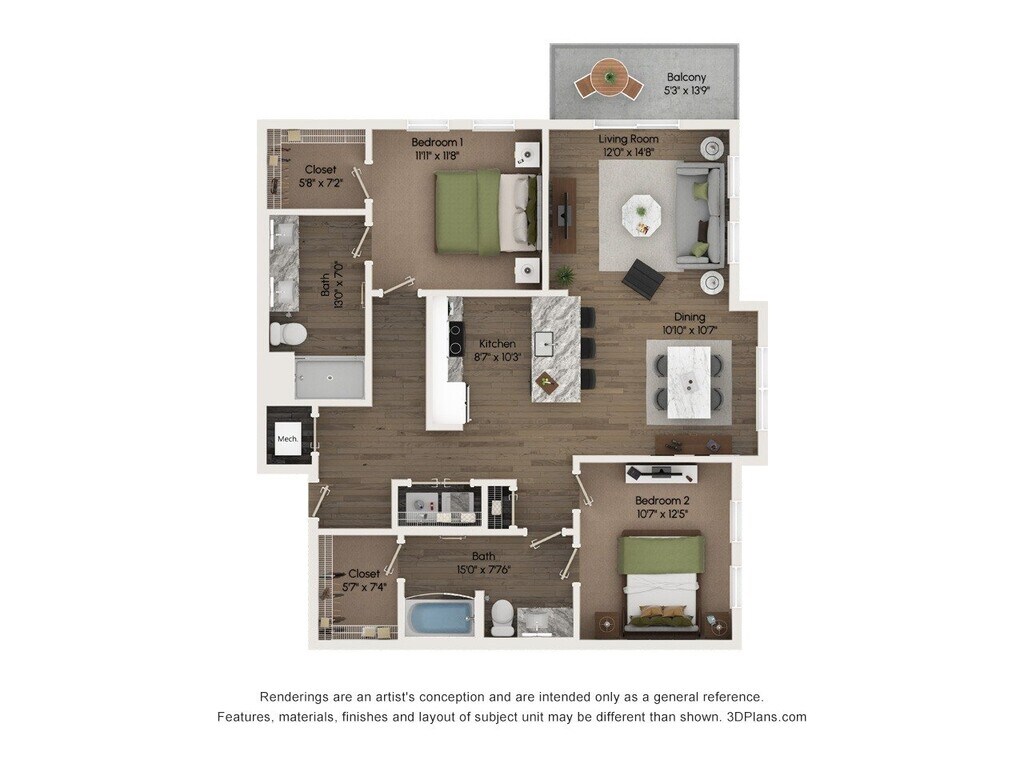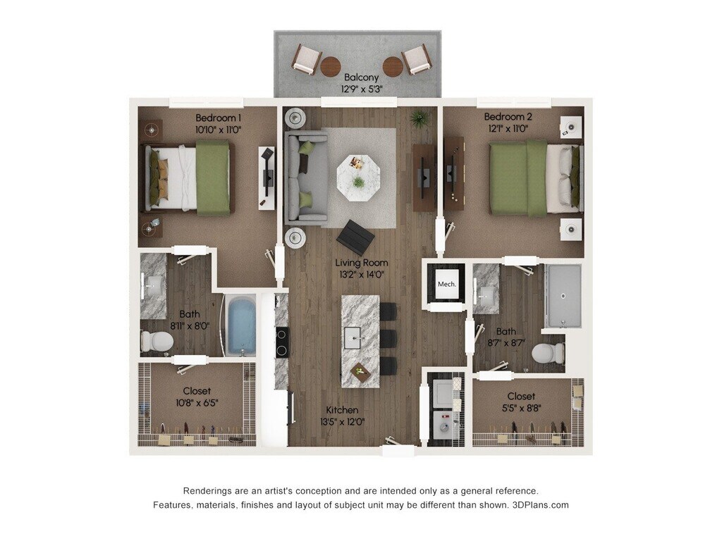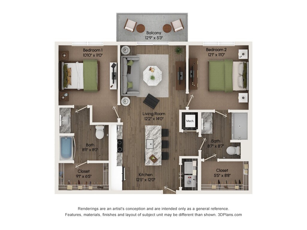 2 Dormitorios, 2 Baños, 1025 pies²Disponible AhoraGalería del Modelo