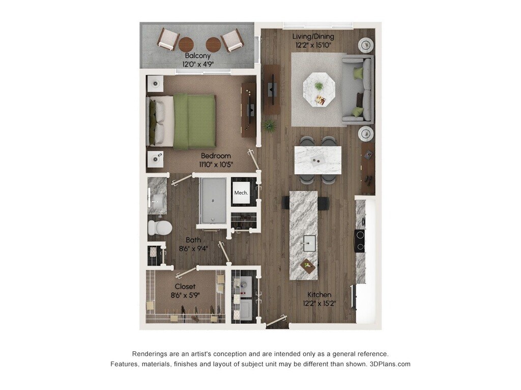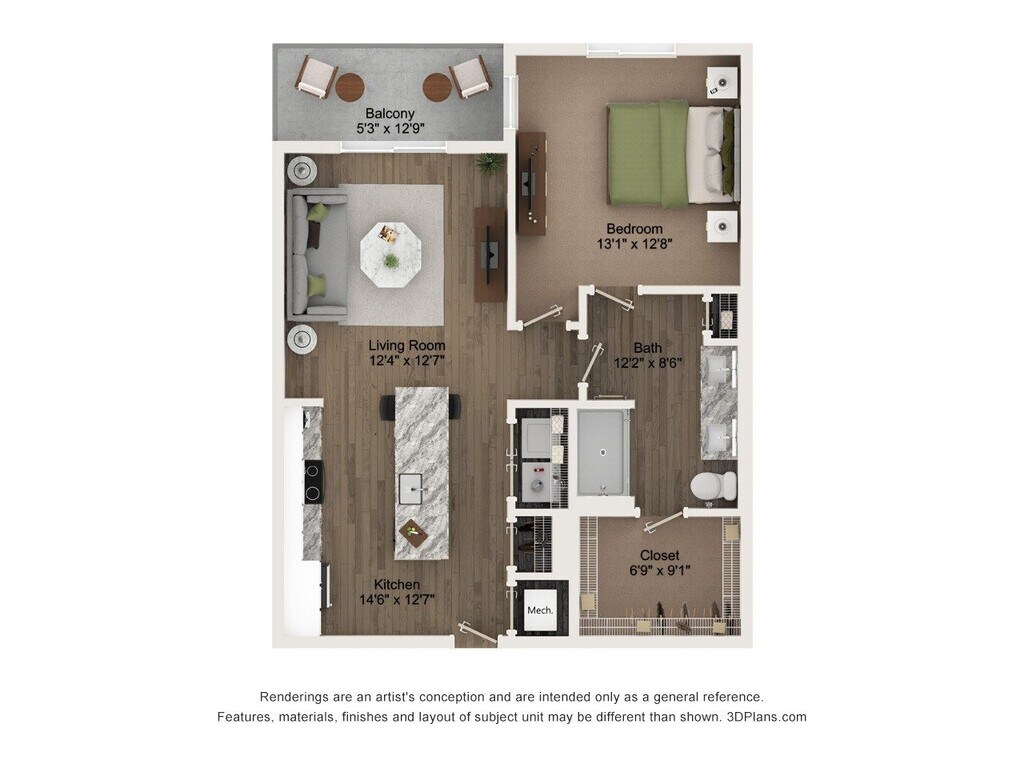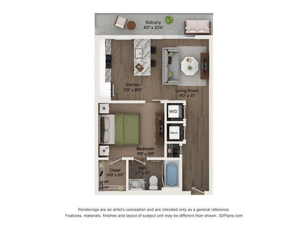 1 Dormitorio, 1 Baño, 789 pies²Disponible AhoraGalería del Modelo
