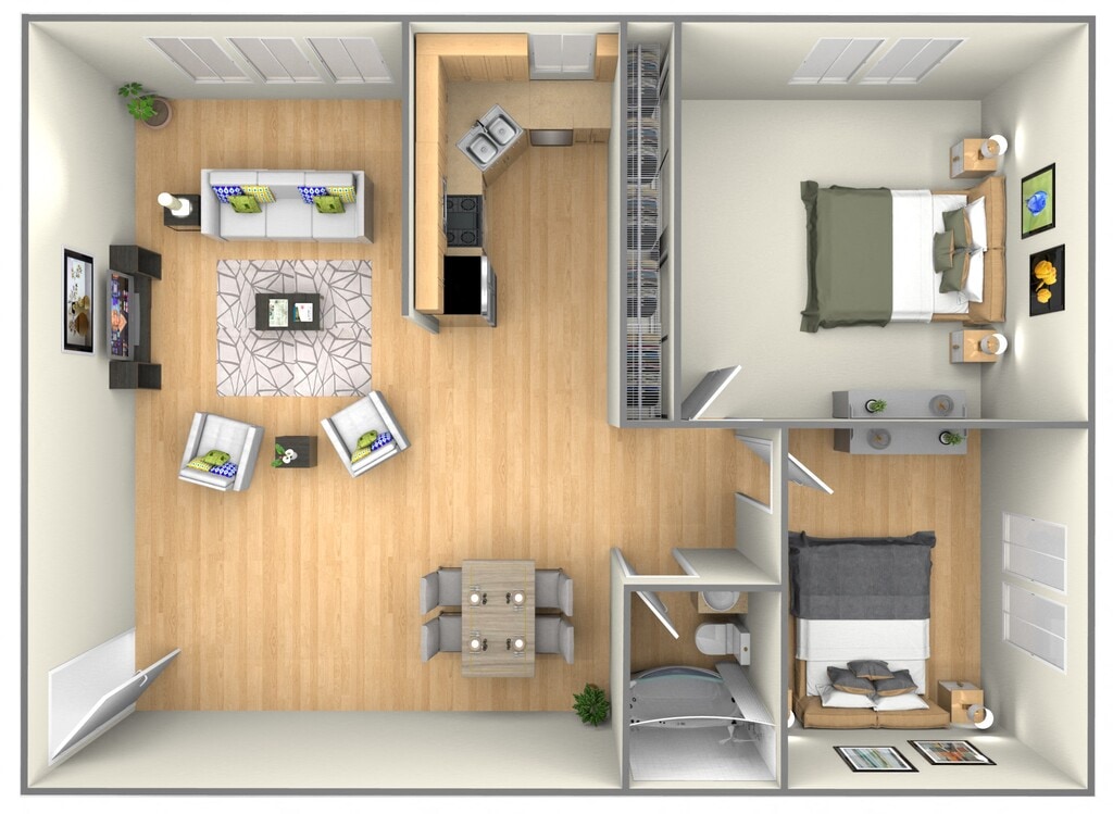 2 Dormitorios, 1 Baño, 850 pies²Galería del Modelo
