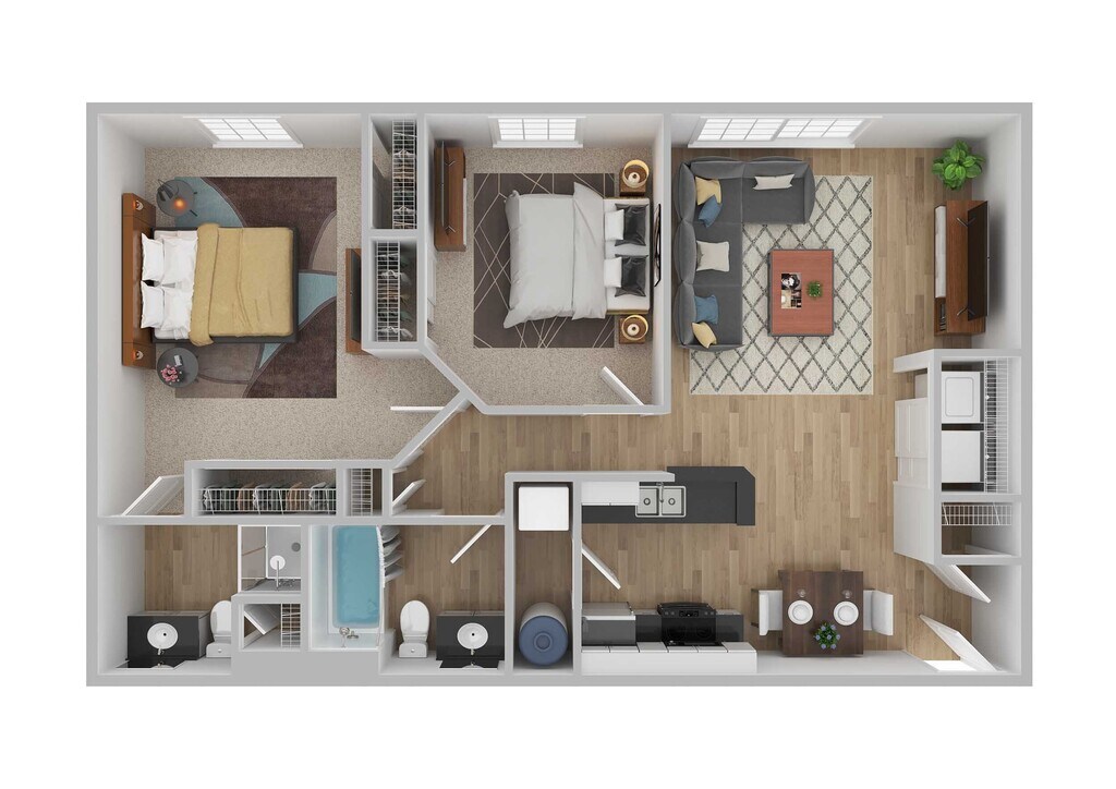 Modelo de apartamento: 1 BedroomDesde $1,0651 Dormitorio, 1 Baño, 682 sq ftDisponible February 28, 2026PlanosFotos![]()