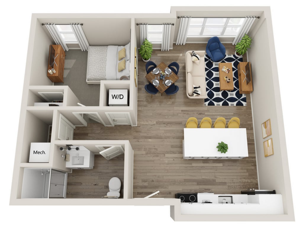 1 Dormitorio, 1 Baño, 637 pies²Disponible February 5, 2026Galería del Modelo