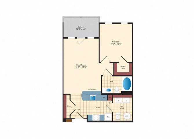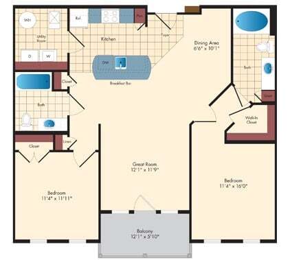 1 Dormitorio, 1 Baño, 1069 pies²El más grandeEsta opción tiene las unidades más grandes para este modeloGalería del Modelo
