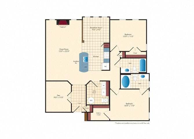 Modelo de apartamento: 2 Bed/2 Bath w/DenDesde $2,7682 Dormitorios, 2 Baños, 1264 sq ftDisponible November 23, 2025PlanosFotos![]()