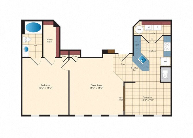 1 Bed/1 Bath w/Sunroom - Plano 1 ![]()