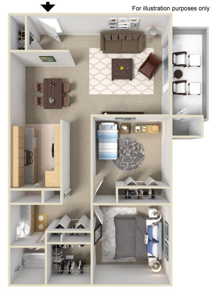 Modelo de apartamento: Plan ADesde $1,5381 Dormitorio, 1 Baño, 650 sq ftDisponible Ahora![]()